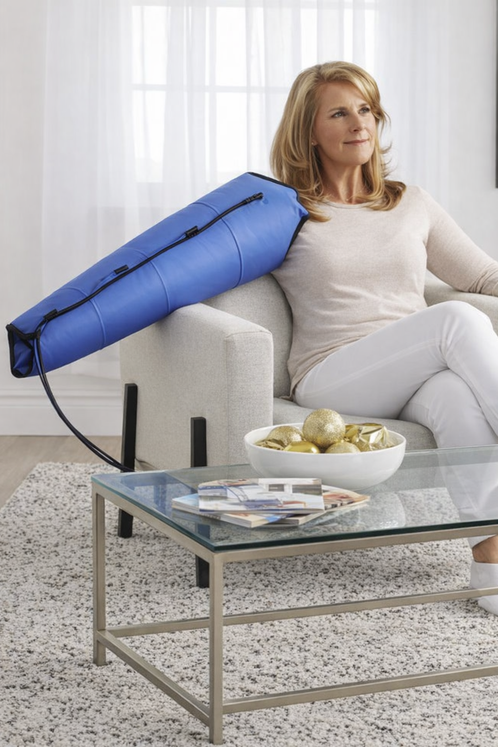 A Lymphedema Pump is an intermittent, pneumatic compression device with sequential gradient pressure. Unlike SCD machines that are designed to prevent blood clots (DVT), a lymphedema pump focuses on moving lymphatic fluid to reduce swelling.